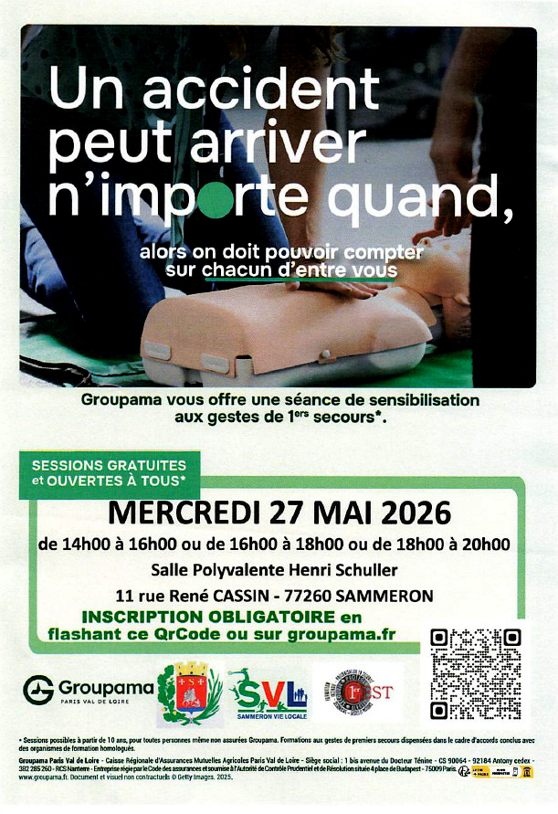 Groupama vous offre une séance de sensibilisation aux gestes de premiers secours à la salle polyvalente de SAMMERON.